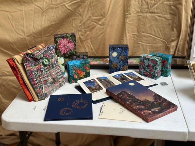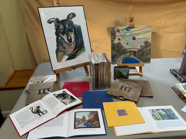 This lifelong artist realized that because she is prolific she often does not recognize her own paintings hanging in people’s homes. Documenting her work has always been important. Turned out, designing and creating books is an exciting and challenging skill for her to hone, and a reason to focus and maintain the discipline of documenting her art each year.
