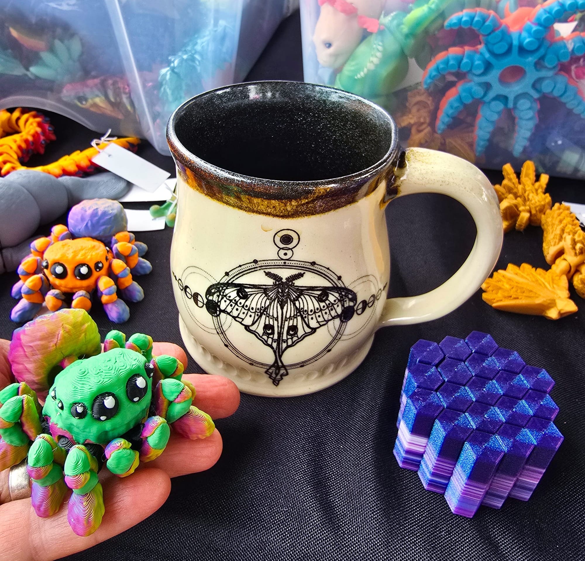 Customers Greta and Andres are no strangers to The Bazaar. Greta returns to the Bad Cat table for earrings month after month, this time buying dragonfly earrings. As an artist, Andres takes inspiration from the artists out selling their work and admires their bravery. "I wish I could buy everything."