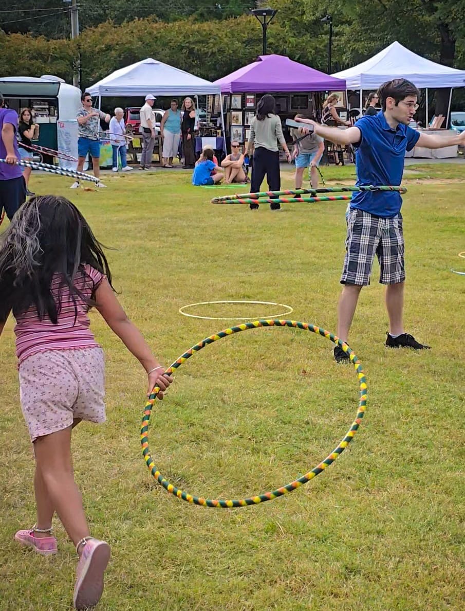 You’ve seen the colorful signs pop up around town in the first weeks of the month, then disappear again after the event. Duncan and Meg Morgan have organized The Bazaar at Carrboro Town Commons for the past 10 years. It takes place six times each year on Sundays in temperate months with 30-40 vendors each time, displaying pottery, jewelry, fine art, crafts, and more. The Morgans ensure an even mix of art types each month and chose Sunday to avoid overlapping with other art markets. There is a deep waiting list for vendors, who manage their own marketing, set-up, location (under tent or roof), and price point to effect sales.