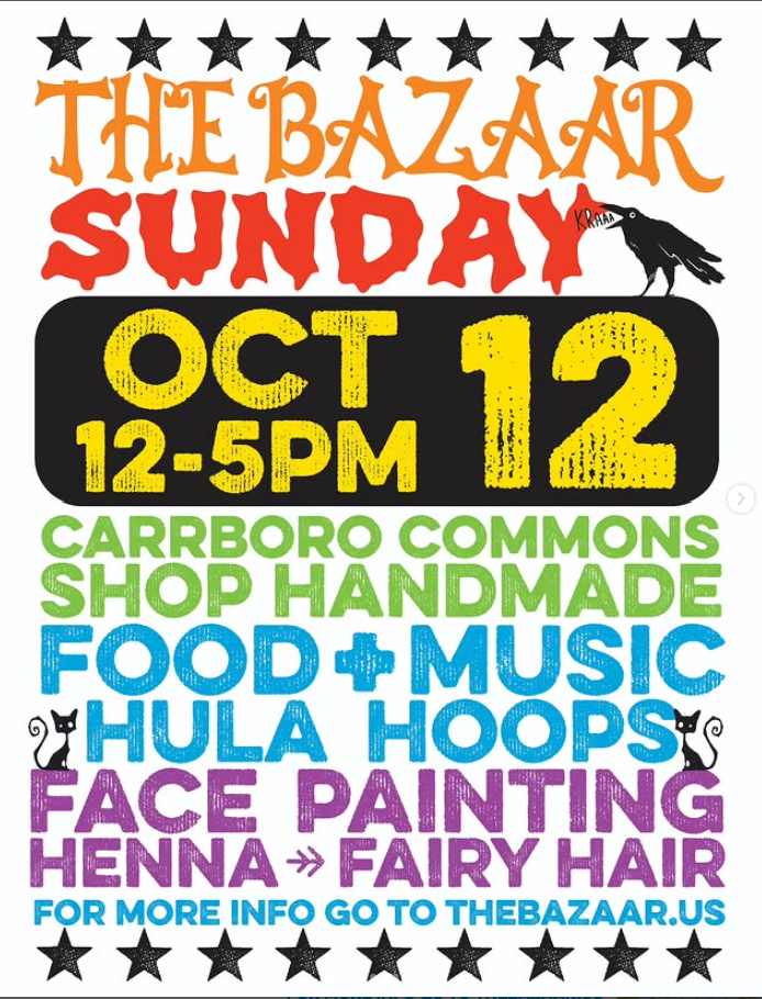 Upcoming dates for The Bazaar: October 12, November 9, and December 7. See you there!