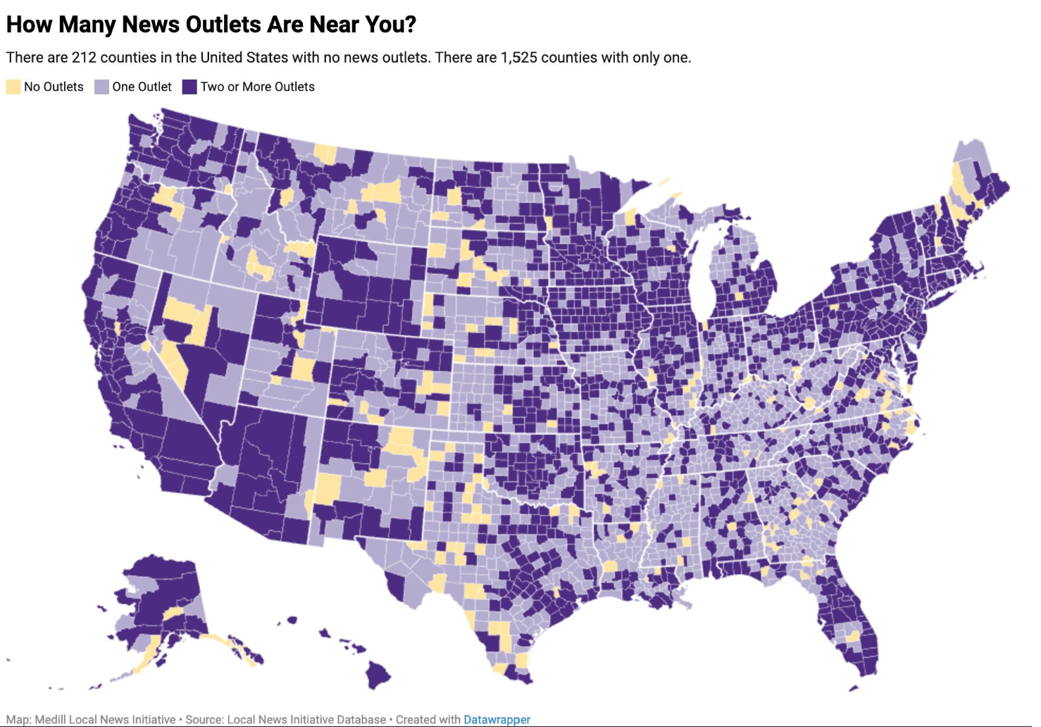 Celebrate Local News Day at The Carrborean's pop-up newsroom, Monday, 4-5pm at Steel String Brewery, 106 South Greensboro St. On Tuesday, Mayor Foushee will read a proclamation at the Town Council meeting (Town Hall, 6pm), recognizing The Carrborean, WCOM 103.5, and other outlets, and the importance of local news in our community. Carrboro is fortunate to be served by several local news outlets. Here's the situation by county throughout the U.S.