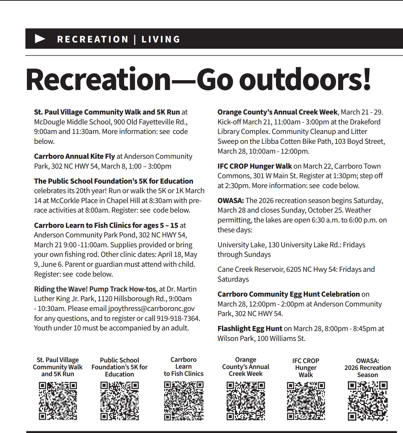 The Community Bulletin Board has announcements and opportunities for giving and civic engagement and is updated weekly.