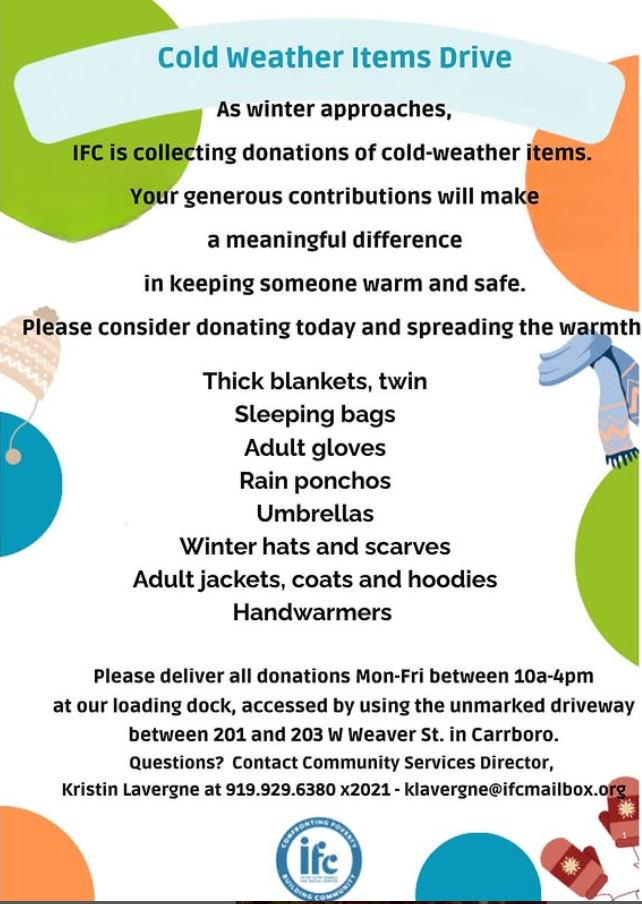 The Inter-Faith Council for Social Service (IFC) fall newsletter is out and they're holding a drive for cold weather items.
