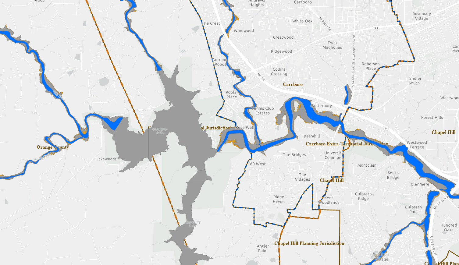 On October 31, residents of the Weatherhill Pointe and Berryhill neighborhoods received an emailed invitation from OWASA to attend a "Blue Sky Meeting." It had been almost four months since Tropical Storm Chantal dumped 10 inches of rain on Carrboro, with almost seven inches falling in one hour--between 7 - 8pm on July 6. That volume, in that period of time, brought University Lake 93 inches over its spillway, causing life-threatening flooding in Weatherhill Pointe and damage to homes in Berryhill.