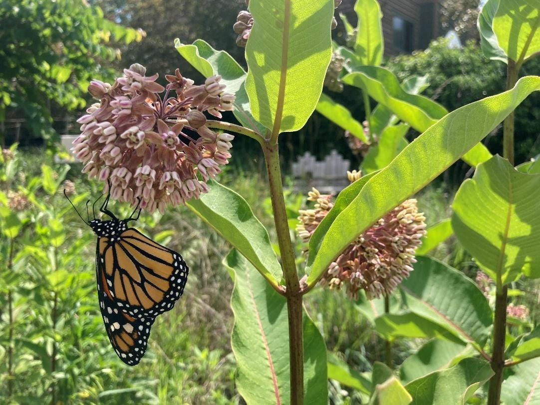 As of 2020, the world produces 3 – 5% fewer fruits, vegetables, and nuts than it would if we had healthy wild pollinator populations. [6] Some species, such as the monarch butterfly, have an estimated economic value in the billions of dollars all by themselves. These insects will cease to exist without the correct host plants on which to lay their eggs. In fact, researchers estimate that the monarch butterfly population has declined by 80% in Central Mexico and over 95% in California. [7] The decline has been attributed in large part to the disappearance of the milkweed plants on which the species relies, resulting in the US Fish and Wildlife Service considering the monarch for protection under the Endangered Species Act. [7] In 2025, Carrboro made a Monarch Pledge, encouraging residents to plant native species of milkweed and other nectar plants to provide habitat for monarchs and other pollinators. [8]
