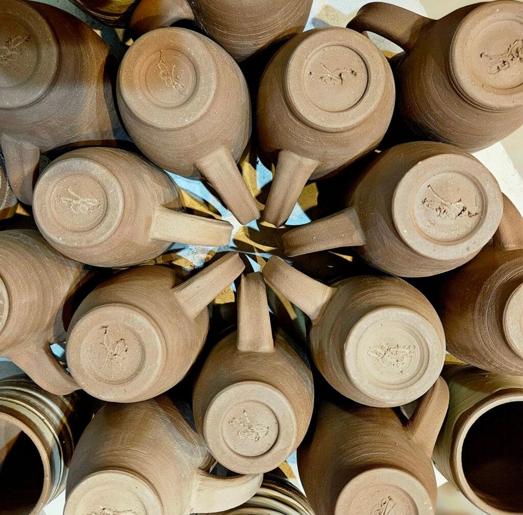 "100之旅--朱莉-伯科威茨陶瓷工作室的共享项目--每位参与者的目标是在300天内用100磅粘土制作100个陶罐,通过粘土、创造力和社区建立联系。"-摘自艺术中心网站